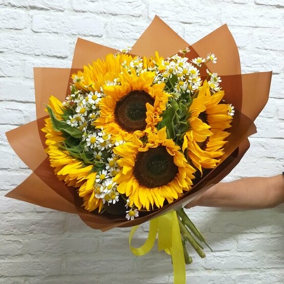 Доставка цветов в Десногорске » Ромашки » Букет с ромашками и подсолнухами