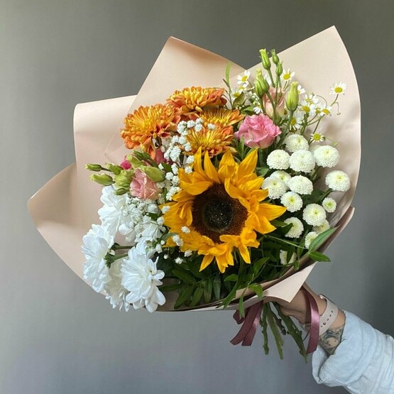 Яркий и ароматный букет, с добавлением подсолнуха, подойдет для любого повода и подарит незабываемые эмоции! Доставка цветов. Заказать цветы недорого. С любовью к Вам и к цветам, команда Зеленая лиса.