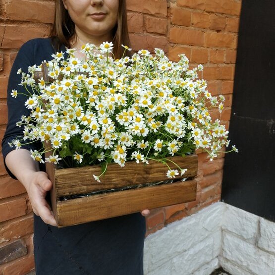 Лето, жаркий летний полдень, жужжание пчел и аромат ромашек. Такие трепетное и нежные эти наивные и простые цветы. Они не отличаются буйством красок или вычурностью формы, но при этом, близки сердцу, радуют и согревают душу. А чтобы подарок точно стал незабываемым, мы собрали для вас цветы в деревянный ящик. Согласитесь, интересная подача! тем более, что внутри ящика – питательная губка, которая помогает цветам сохранять свежесть. Такую композицию можно захватить с собой в гости. Доставка цветов. Заказать цветы недорого. С любовью к Вам и к цветам, команда Зеленая лиса.