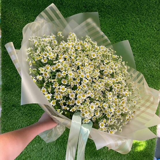 Букет из кустовых ромашек Камилла. Доставка цветов. Заказать цветы недорого. С любовью к Вам и к цветам, команда Зеленая лиса.