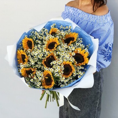 Солнечные летние ромашки и подсолнухи подарят отличное настроение! Доставка цветов. Заказать цветы недорого. С любовью к Вам и к цветам, команда Зеленая лиса.