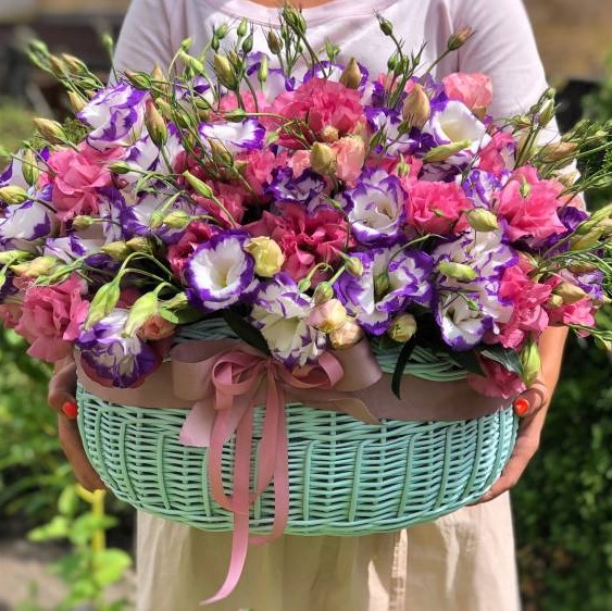 Состав: эустомы микс-31 шт, корзина Доставка цветов. Заказать цветы недорого. С любовью к Вам и к цветам, команда Зеленая лиса.