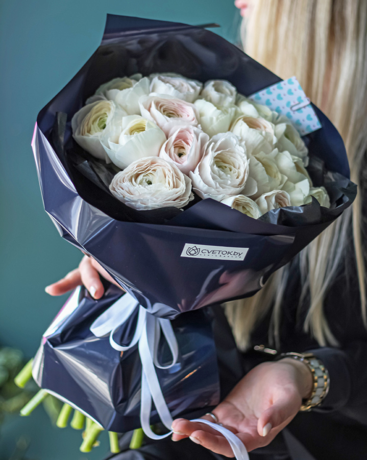 Роскошный букет из магических ранункулюсов сорта Ханой. Доставка цветов. Заказать цветы недорого. С любовью к Вам и к цветам, команда Зеленая лиса.