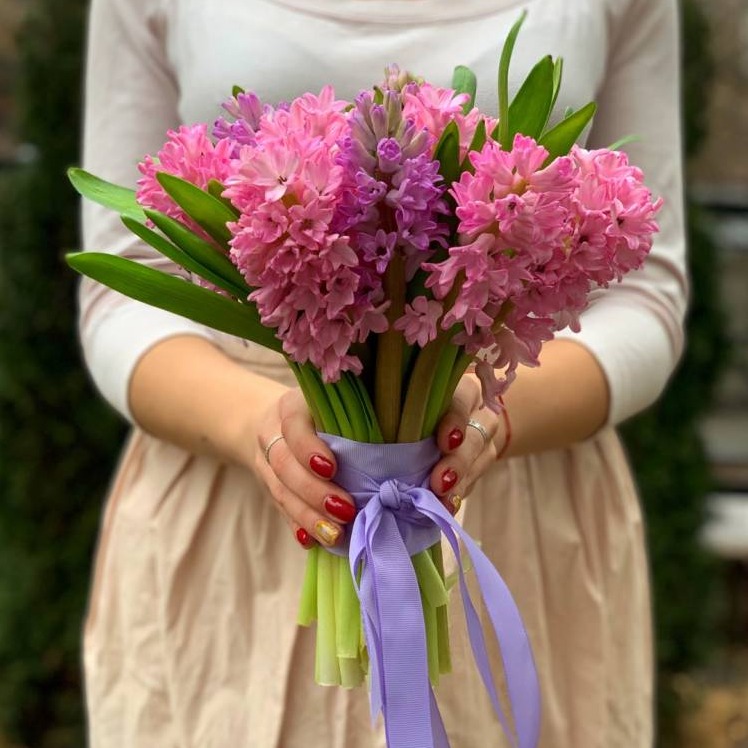 Состав: гиацинт 11 шт, лента. Доставка цветов. Заказать цветы недорого. С любовью к Вам и к цветам, команда Зеленая лиса.
