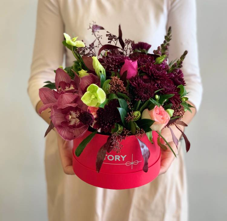Состав: цимбидиум, роза, эвкалипт, скимия, антиринум, хелеборус, хризантема кустовая, коробка Доставка цветов. Заказать цветы недорого. С любовью к Вам и к цветам, команда Зеленая лиса.