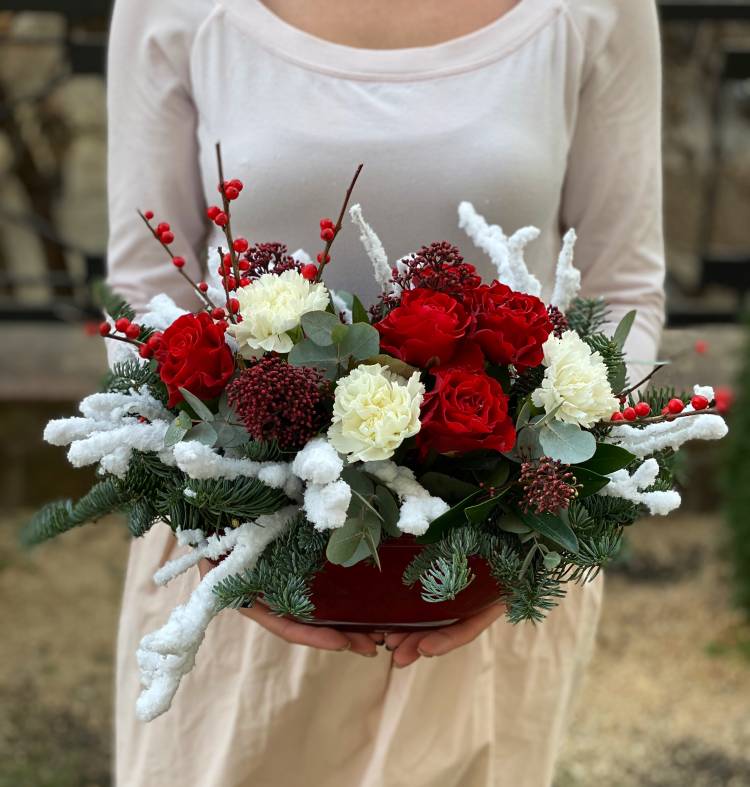 Состав: роза, илекс, берк, скимия, эвкалипт, ель, гвоздика, оазис, ваза. Доставка цветов. Заказать цветы недорого. С любовью к Вам и к цветам, команда Зеленая лиса.