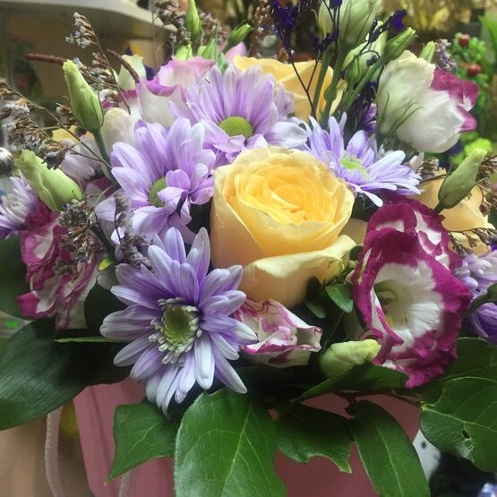 Цветочная композиция, собранная в нашем салоне – прекрасный подарок, который можно подарить как на большое торжество так и просто в знак внимания! Такие цветы не надо думать куда поставить, они уже в «вазе», оазис пропитан водой. Можно поставить в офисе или взять с собой в дорогу и не думать о том, что цветы завянут. Доставка цветов. Заказать цветы недорого. С любовью к Вам и к цветам, команда Зеленая лиса.