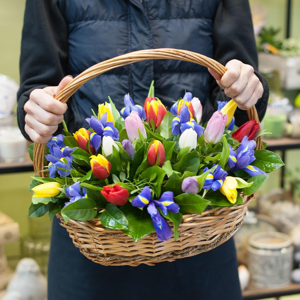 Доставка цветов в Самаре » Цветы » Тюльпаны и ирисы в корзине