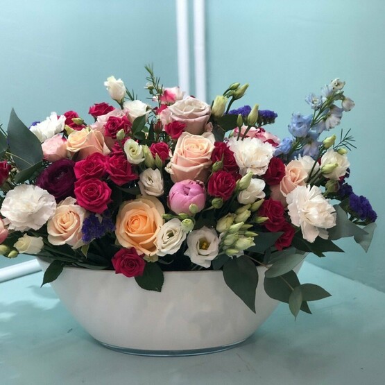 Невероятно яркая и насыщенная композиция в стильной вазе станет отличным подарком для ваших близких людей. Доставка цветов. Заказать цветы недорого. С любовью к Вам и к цветам, команда Зеленая лиса.