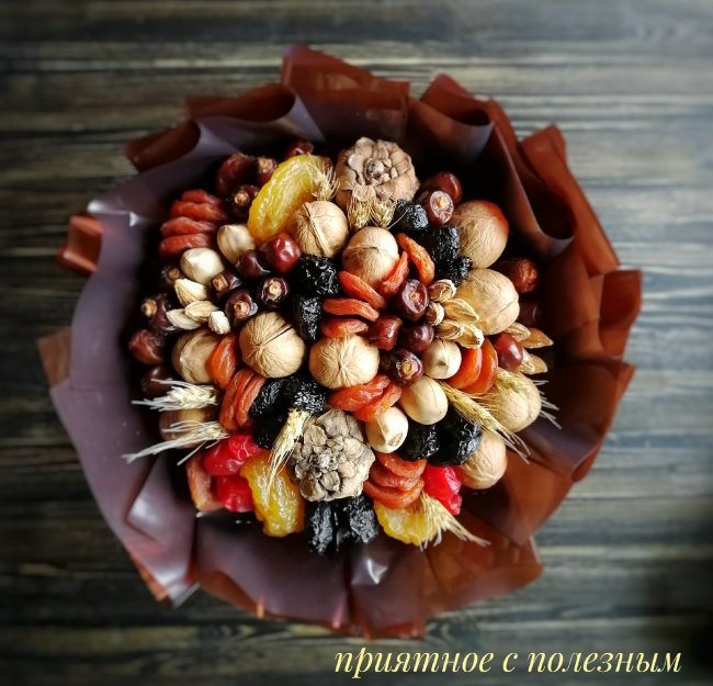 Доставка цветов в Тольятти » Фруктовый букет » Сухофруктовый букет «Сезон экзотики»