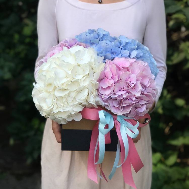 Доставка цветов в Лабинске » Гортензии » Гортензии в коробке «Всем сердцем»