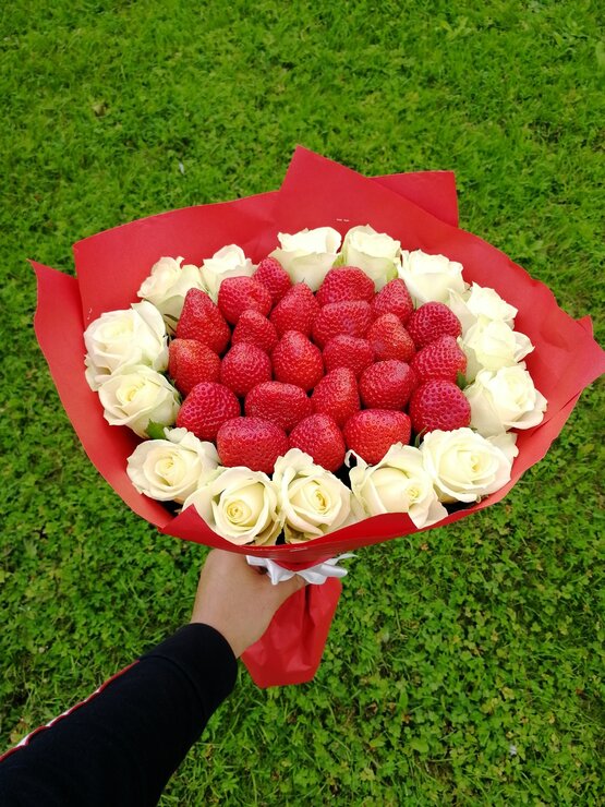 Клубника с розами. и другие товары в данной категории доступны в каталоге интернет-магазина Зеленая Лиса в Черноголовке по низким ценам. Ознакомьтесь с подробными характеристиками и описанием, а также отзывами о данном товаре, чтобы сделать правильный выбор и заказать цветы онлайн. Закажите доставку такого букета, как Клубника с розами., в интернет-магазине Зеленая Лиса, предварительно уточнив их наличие. Вы можете получить товар в Черноголовке удобным для Вас способом, для этого ознакомьтесь с информацией о доставке