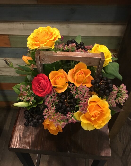 Яркая композиция из роз и ягод! может быть исполнена в любой цветовой композиции. Доставка цветов. Заказать цветы недорого. С любовью к Вам и к цветам, команда Зеленая лиса.
