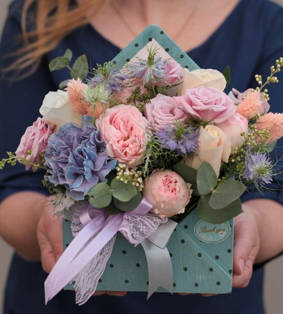 Стильный конверт с нежными цветами.Прекрасный подарок для любимых и близких ) Доставка цветов. Заказать цветы недорого. С любовью к Вам и к цветам, команда Зеленая лиса.