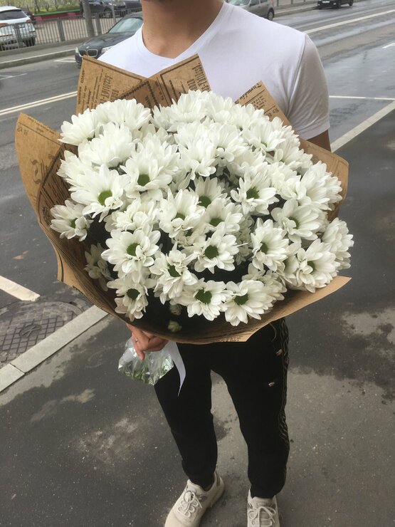 Шикарный букет из белых кустовых хризантем..Рассказать о пылкости ваших чувств сможет букет белых хризантем, ведь белые хризантемы символизирует ваше горячее сердце, которое останется с возлюбленной и будет дарить ей надежду на скорейшее ваше возвращение к ней.. Доставка цветов. Заказать цветы недорого. С любовью к Вам и к цветам, команда Зеленая лиса.