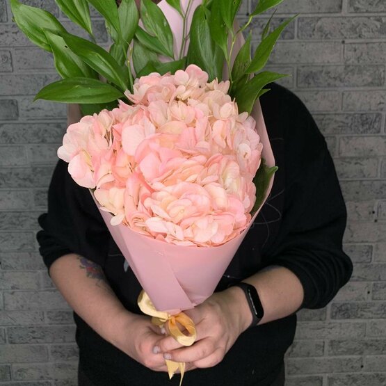 Прекрасный букет из розовой гортензии, легкий, пышный и воздушный. Доставка цветов. Заказать цветы недорого. С любовью к Вам и к цветам, команда Зеленая лиса.