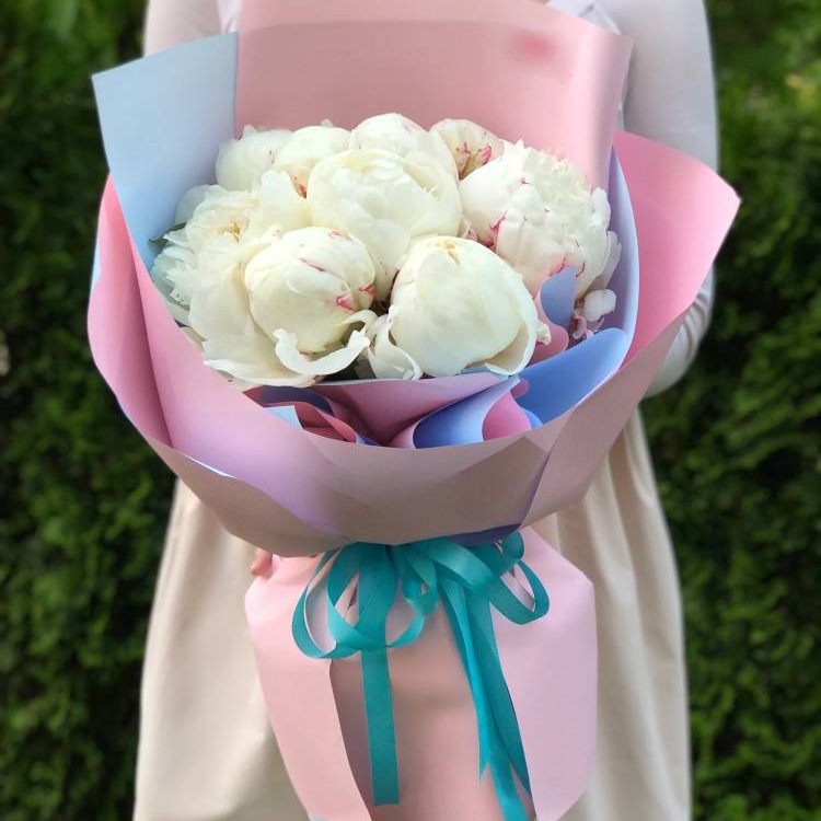 Доставка цветов в Поронайске » Пионы » Букет 9 белых пионов