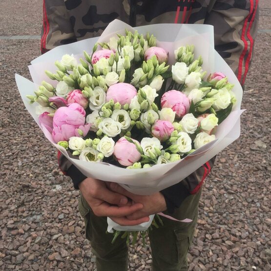 Доставка цветов в Самаре » Пионы » Букет из пионов и эустом