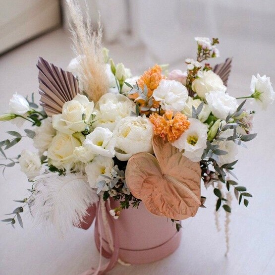Нежная, трогательная композиция с антуриумом, эустомой, розами и душистым эвкалиптом передаст ваши самые теплые и искренние чувства, подарит море положительных, радостных эмоций! Такая композиция впишется практически в любой интерьер и долго будет радовать вас своей красотой! Доставка цветов. Заказать цветы недорого. С любовью к Вам и к цветам, команда Зеленая лиса.