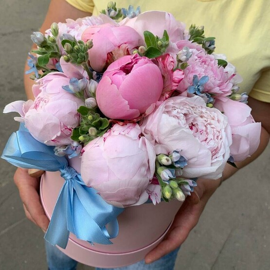 Пионы в коробке Доставка цветов. Заказать цветы недорого. С любовью к Вам и к цветам, команда Зеленая лиса.