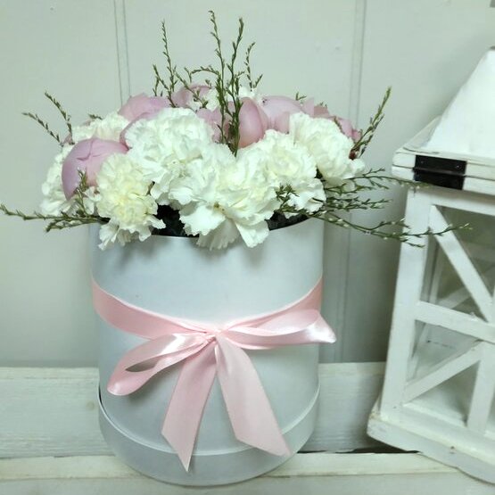 Лишь несколько слов нам порой достаточно, чтобы сказать самое важное. В этом букете мы собрали самые нежные и воздушные цветы, чтобы помочь вам рассказать о самом сокровенном. Лепестки пиона выражают нежность, белая гвоздика – скромность и изящество. Пион постепенно распускается, открывая свое сердце, а гвоздика дарит тончайший аромат. Сочетаясь вместе, цветы оттеняют и дополняют друг друга, как и положено идеальной паре влюбленных! Доставка цветов. Заказать цветы недорого. С любовью к Вам и к цветам, команда Зеленая лиса.