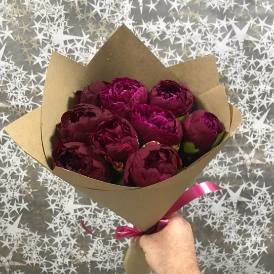 Прекрасный букет из красных пионов. Доставка цветов. Заказать цветы недорого. С любовью к Вам и к цветам, команда Зеленая лиса.