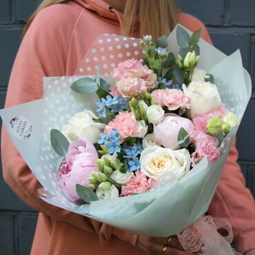 Нежный и ароматный букет с пионами и пионовидной розой подойдет для подарка на любой случай. Предзаказ за 1-2 дня Доставка цветов. Заказать цветы недорого. С любовью к Вам и к цветам, команда Зеленая лиса.