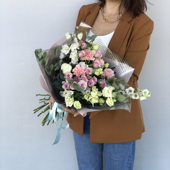 Нежная композиция будет долго радовать получателя своей красотой и стойкостью. Доставка цветов. Заказать цветы недорого. С любовью к Вам и к цветам, команда Зеленая лиса.