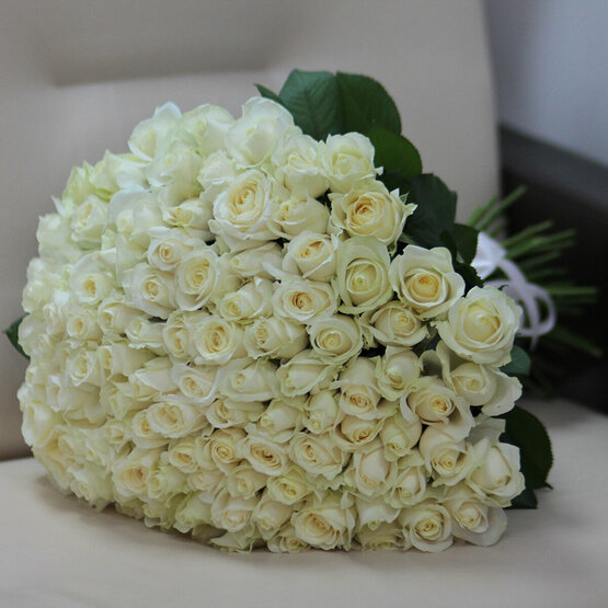 Доставка цветов в Красноярске » подборка 1 » 101 белая роза 50 см