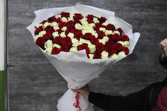 Красная и белая роза класический букет для дамы и для близких людей.Роза как королева среди цветов. Дойстойно можно дарить для близких людей. Доставка цветов. Заказать цветы недорого. С любовью к Вам и к цветам, команда Зеленая лиса.