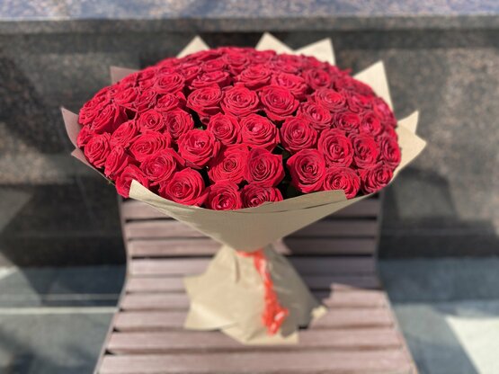 Шикарный букет из 101 красных роз ? Доставка цветов. Заказать цветы недорого. С любовью к Вам и к цветам, команда Зеленая лиса.