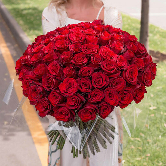 Красный цвет символизирует страсть и влюбленность. Букет из 101 ароматного ярко-красного цветка на длинной ножке превращается в роскошное облако, говорящее об искренних чувствах дарителя. Такой подарок – идеальный способ объявить любимой о своих серьезных намерениях! Доставка цветов. Заказать цветы недорого. С любовью к Вам и к цветам, команда Зеленая лиса.