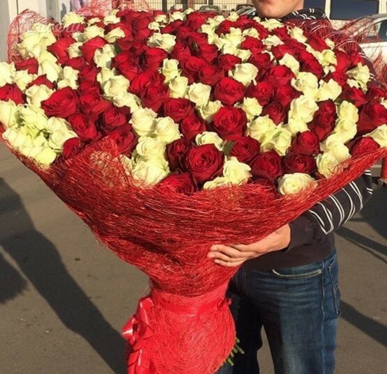 Гарантируем свежесть цветов, доставка от двух часов!!! букет из красных и белых роз без слов расскажет о ваших чувствах. эти классические цвета сочетают элегантность и стиль. можете быть уверены — получить такой роскошный подарок поистине приятно. а дарить, как известно, приятно вдвойне. Доставка цветов. Заказать цветы недорого. С любовью к Вам и к цветам, команда Зеленая лиса.