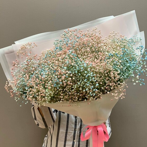 Объемный, воздушный букет! гипсофила в тренде в этом сезоне. Радужный цвет, поднимет настроение обладателю этого букета? Доставка цветов. Заказать цветы недорого. С любовью к Вам и к цветам, команда Зеленая лиса.