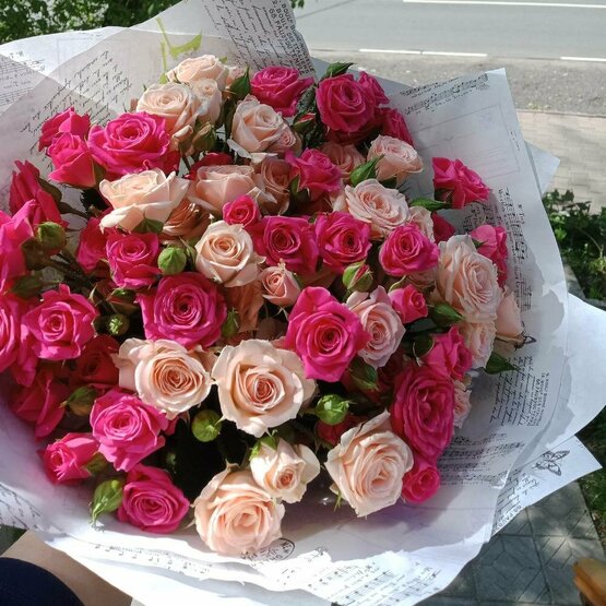 Кустовые розы с подмосковных теплиц Доставка цветов. Заказать цветы недорого. С любовью к Вам и к цветам, команда Зеленая лиса.