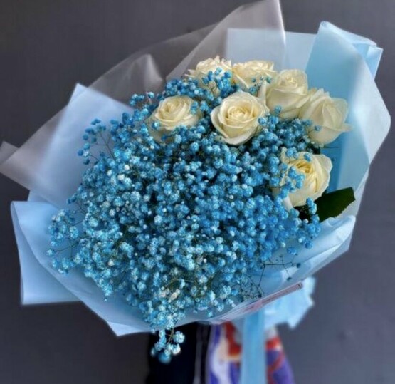 Невероятно нежный,красивый букет в необыкновенном сочетании голубой гипсофилы и белой розы очень порадует,доставит много радости и счастья! ? такой букет будет долго радовать и вдохновлять! ❤️? Доставка цветов. Заказать цветы недорого. С любовью к Вам и к цветам, команда Зеленая лиса.