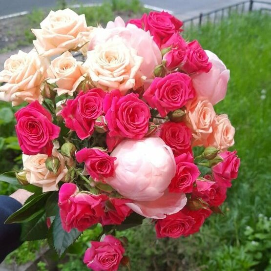 В Китае пион считается императорским цветком, а роза – это царица цветов. Композиция, составленная из этих нежных растений не оставит равнодушной ни одну даму. Отличный выбор, если вы еще не знаете о вкусах возлюбленной! Доставка цветов. Заказать цветы недорого. С любовью к Вам и к цветам, команда Зеленая лиса.