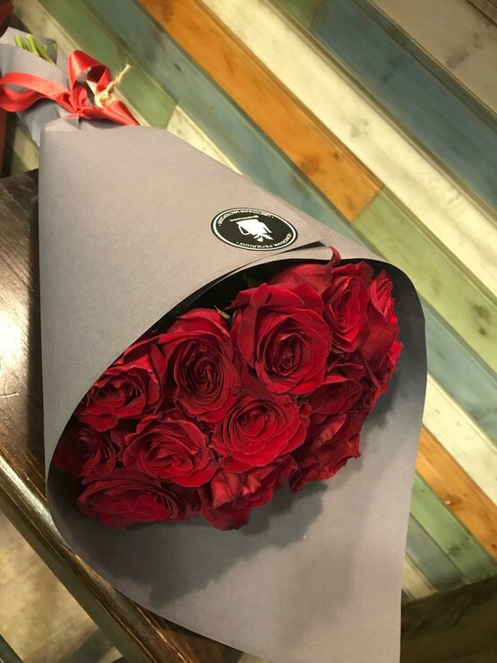 Прекрасная роза «эльторо», яркая, красная в оригинальной, дизайнерской упаковке. на данном фото 19 шт Доставка цветов. Заказать цветы недорого. С любовью к Вам и к цветам, команда Зеленая лиса.