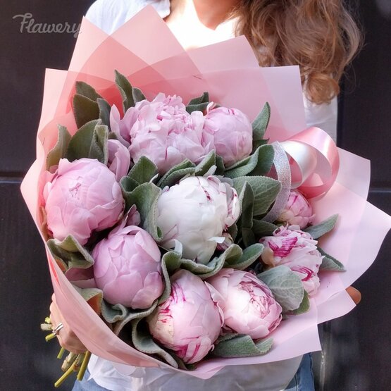 Спешите порадовать близкого человека сейчас! ниже цен, чем в разгар сезона уже не будет!!!! самый заказываемый и самый популярный год от года голландский пион сара бернар дополненный пушистыми веточками стахиса. Букет упакован в лаконичную корейскую матовую пленку. Уход заключается в ежедневной подрезке стеблей, замене воды в вазе и установки в дали от тепловых приборов и прямых солнечных лучей Доставка цветов. Заказать цветы недорого. С любовью к Вам и к цветам, команда Зеленая лиса.