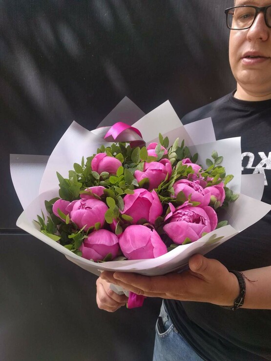 Невероятно сочные, яркие и ароматные пионы александр флеминг в сочетании с изумрудными листочками черничника. Подарок который она точно оценит! для продления жизни цветов в вазе требуется ежедневная смена воды, подрезка стеблей, а так же размещение вазы вдали от тепловых приборов и прямых солнечных лучей. Доставка цветов. Заказать цветы недорого. С любовью к Вам и к цветам, команда Зеленая лиса.