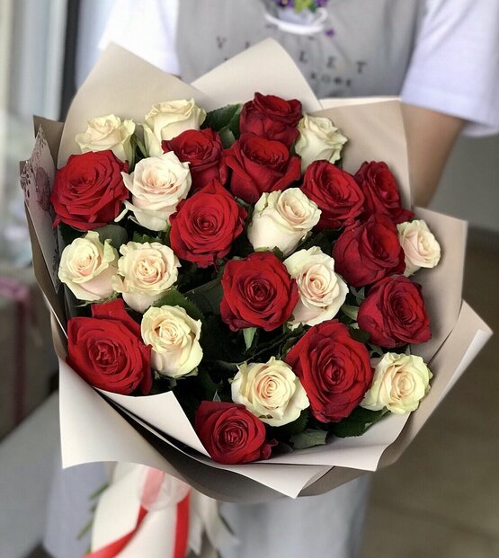 Классический и в то же время оригинальный букет французских роз бордового и кремового оттенков, которые отлично сочетаются вместе. Доставка цветов. Заказать цветы недорого. С любовью к Вам и к цветам, команда Зеленая лиса.