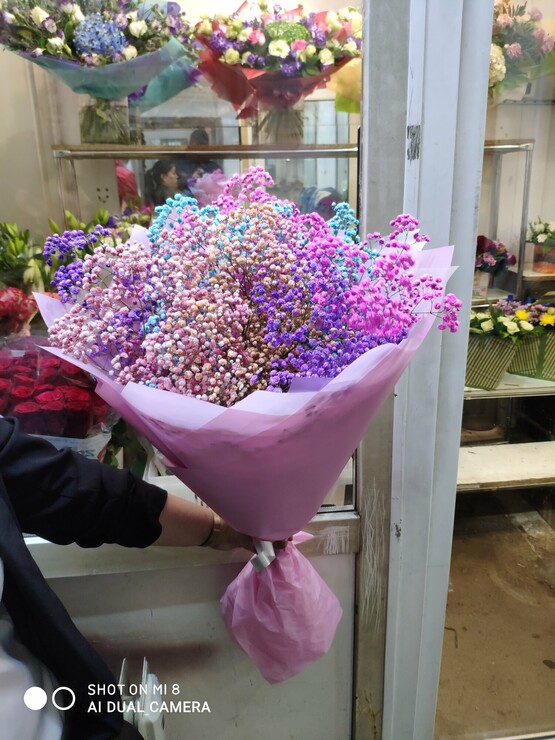 Фантастическая радужнаягипсофила стала для нас настоящей находкой. Необычная, , красочная и очень стойкая, она сразу завоевала почетное место в наших лучших композициях и букетах. Радужная гипсофила – это идеальное дополнение цветочного ансамбля, которое привносит в него цветную палитру и объем. Невероятно хороши и монобукеты из радужной гипсофилы, которые смотрятся очень современно и свежо в стильной многослойной упаковке. Радужная гипсофила будет лучшим подарком для поднятия настроения и … Доставка цветов. Заказать цветы недорого. С любовью к Вам и к цветам, команда Зеленая лиса.