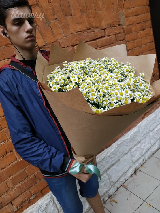 Пышный, ароматный и красивый букет из полевой ромашки. Он восхитителен и однозначно порадует получателя! наш флорист с любовью соберет этот букет а курьер быстро и аккуратно доставит его. Доставка цветов. Заказать цветы недорого. С любовью к Вам и к цветам, команда Зеленая лиса.