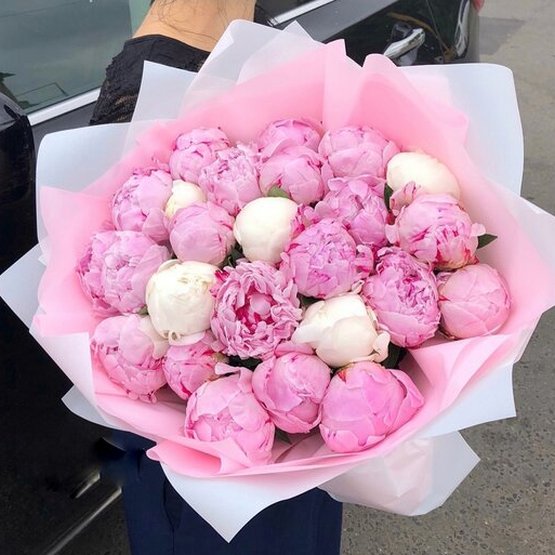 Букет из нежно-розовых пионов, без сомнения, счастлива будет получить каждая девушка, ведь эти цветы означают любовь и тепло, который даритель испытывает к адресату своего подарка. Оригинальная упаковка матовая пленка, перевязанная несколькими игривыми лентами розового цвета дополнят букет, делая его еще изящнее и оригинальнее! Доставка цветов. Заказать цветы недорого. С любовью к Вам и к цветам, команда Зеленая лиса.