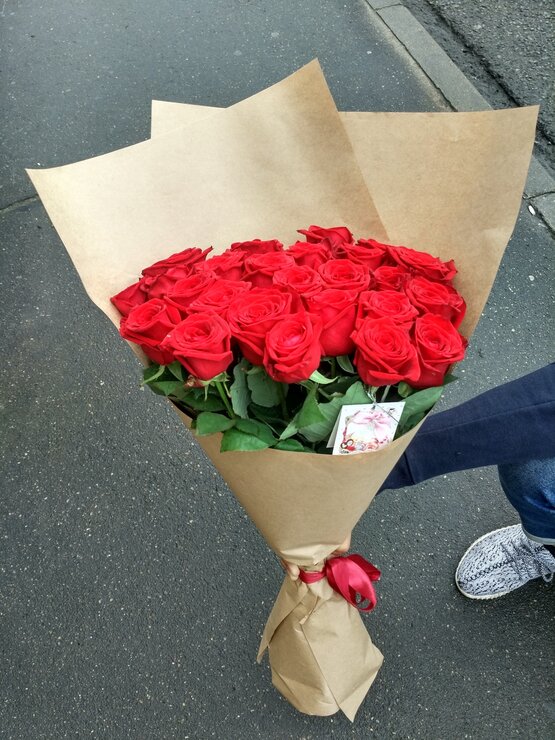 Чудесный букет из 25 красных роз – это приятный подарок, который понравится каждому! яркие цвета и нежные распускающиеся бутоны со сладким ароматом дарят прекрасное настроение и ощущение тепла и внимания. Доставка цветов. Заказать цветы недорого. С любовью к Вам и к цветам, команда Зеленая лиса.