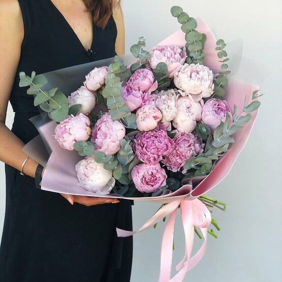 Ароматный летний букет из пионов с эвкалиптом – это отличный повод порадовать любимых. Дарить цветы было принято во все времена и по любому случаю. Наши маленькие радости, моменты невообразимого счастья и самые важные события в жизни окружены цветочным вальсом. Согласитесь, невозможно забыть свой первый букет и тот, который вы сами подарили кому-то впервые. А ещё вне зависимости от нашего возраста, образа жизни, социального статуса у каждого из нас есть свой любимый цветок, знать о котором доверено только самым близким и родным людям. Доставка цветов. Заказать цветы недорого. С любовью к Вам и к цветам, команда Зеленая лиса.