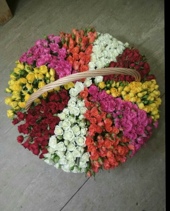 Гарантируем свежесть цветов. доставка от двух часов!если вы хотите поразить любимую и сделать подарок, который останется навсегда в ее сердце – закажите этот огромную и роскошную корзину из мелких кустовых розочек. яркое розовое многоцветье призвано передать всю палитру оттенков чувств, которые испытывает даритель, а нешуточный размер букета покажет всю величину его любви. Доставка цветов. Заказать цветы недорого. С любовью к Вам и к цветам, команда Зеленая лиса.