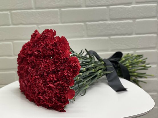 Траурный букет из 50 гвоздик Доставка цветов. Заказать цветы недорого. С любовью к Вам и к цветам, команда Зеленая лиса.
