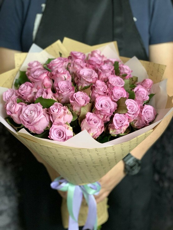 Необыкновенный букет из фиолетовой розы сорта маритим. Доставка цветов. Заказать цветы недорого. С любовью к Вам и к цветам, команда Зеленая лиса.