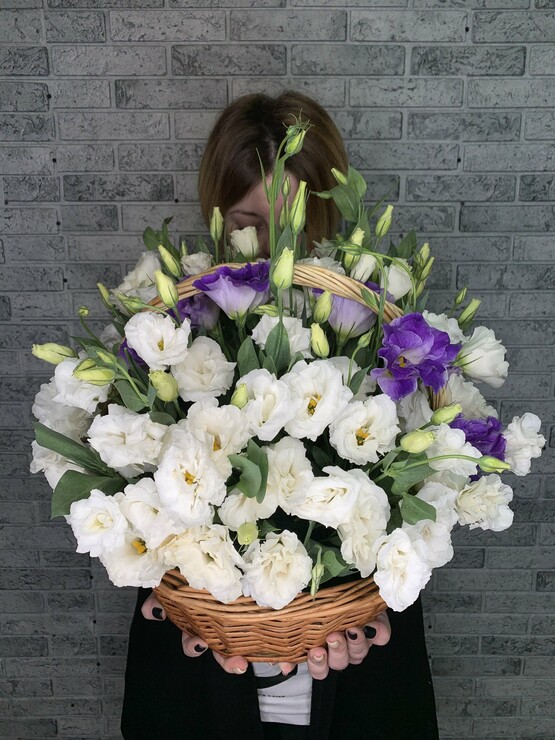 Сногсшибающая корзина с премиум лизиантусом. она покорит каждого, потому что ее красоты невозможно не оценить. Доставка цветов. Заказать цветы недорого. С любовью к Вам и к цветам, команда Зеленая лиса.